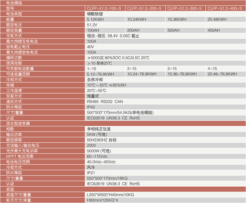 堆叠式储能系统-产品参数: