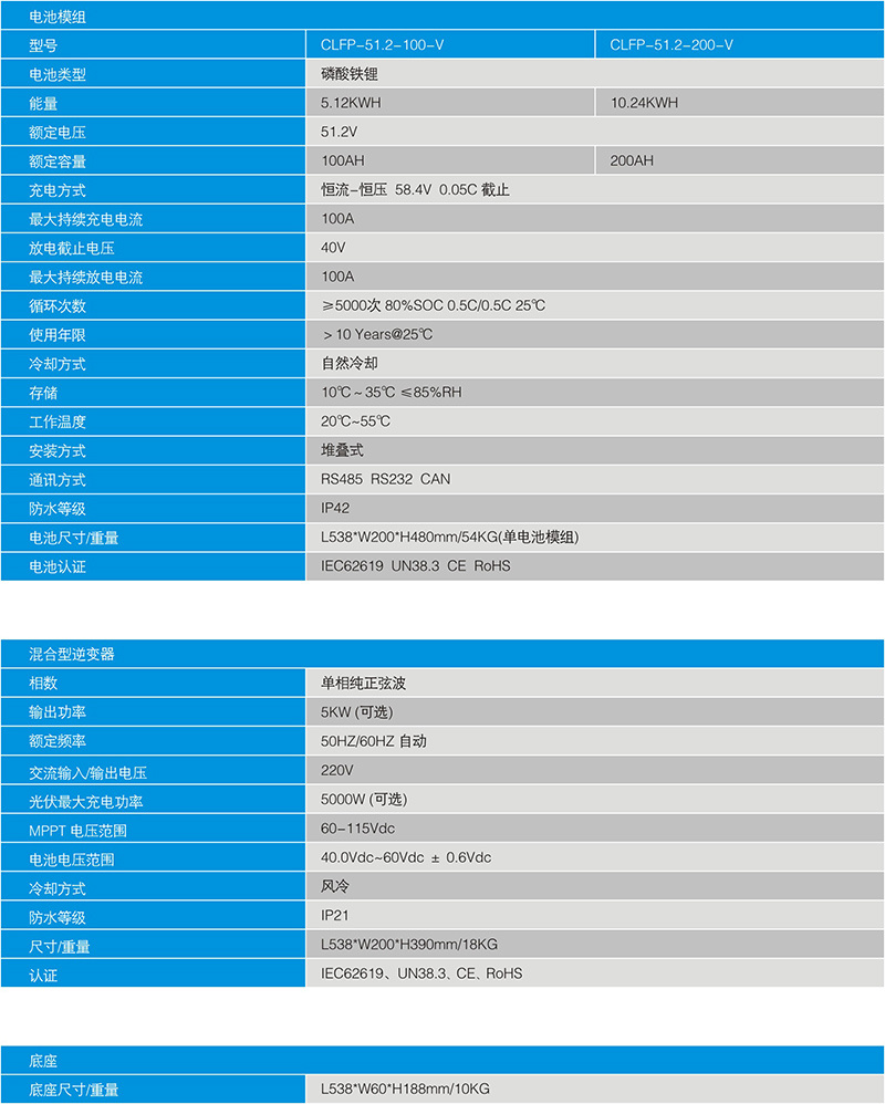 立式储能系统-产品参数: