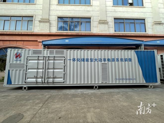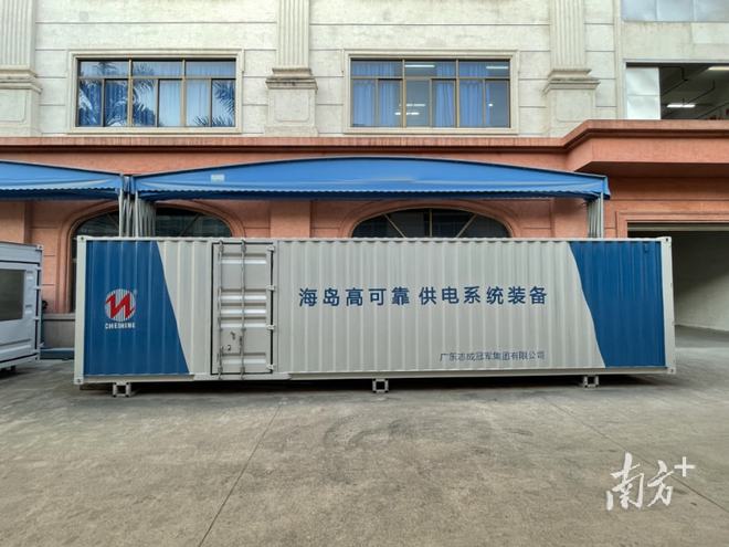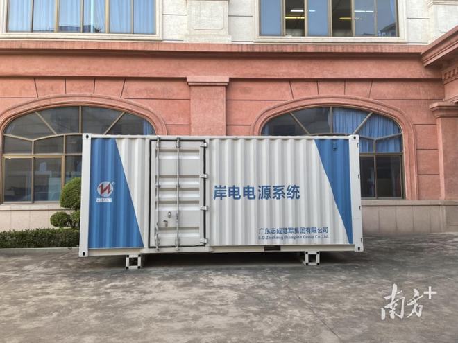 在塘厦志成冠军的园区里,三台长方体状、蓝白相间的“集装箱”并列摆放在厂房旁,一个20英尺,两个40英尺。这三个设备分别是海岛高可靠供电系统装备、一体化储能型大功率电源系统装备和岸电电源系统。其中,重达数吨的岸电电源系统会通过陆运运输,发往珠海、深圳、东莞等城市的港口,最远需要跨越大半个中国运输到青岛港口,为船舶卸货转货提供可靠电源。而一体化储能型大功率电源系统装备主要用于西气东输工程,为泵站供电。