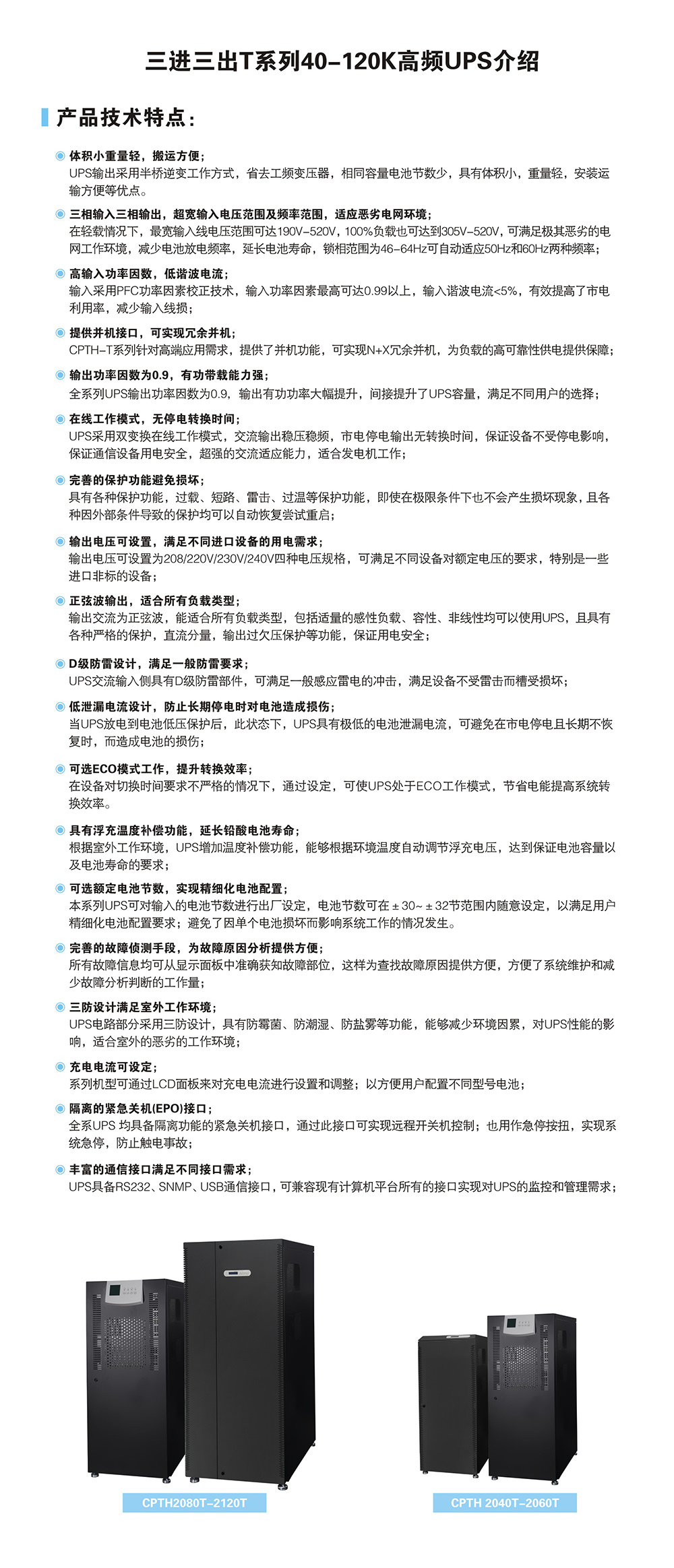 CPTH三进三出T系列40-120K高频UPS